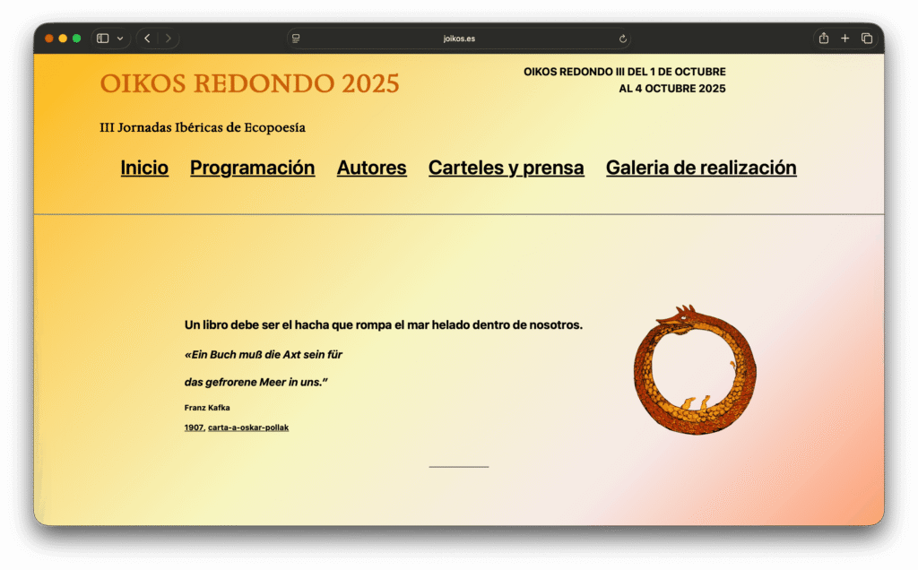 JOIKOS.ES es una página web desarrollada utilizando WordPress, orientada a la difusión de contenido cultural y la organización de las jornadas Ibéricas de Ecopoesía, organizadas por la Asociación Cultural Santiago Aguaded Landero.